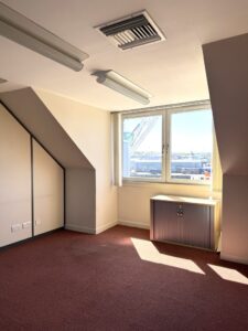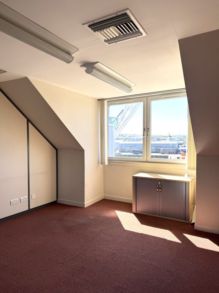 The third floor suite in Ocean Spirit House West spans 1,576sqft and has a stunning view over Victoria Dock. The suite is made up of a mix of large open-plan and private offices, and has it own kitchen and toilet facilities. There comes three secure carparking spaces in one of the three on-site carparks with the suite, and there’s free on-street parking in the vicinity. The suite is accessible by stairs and lift.
